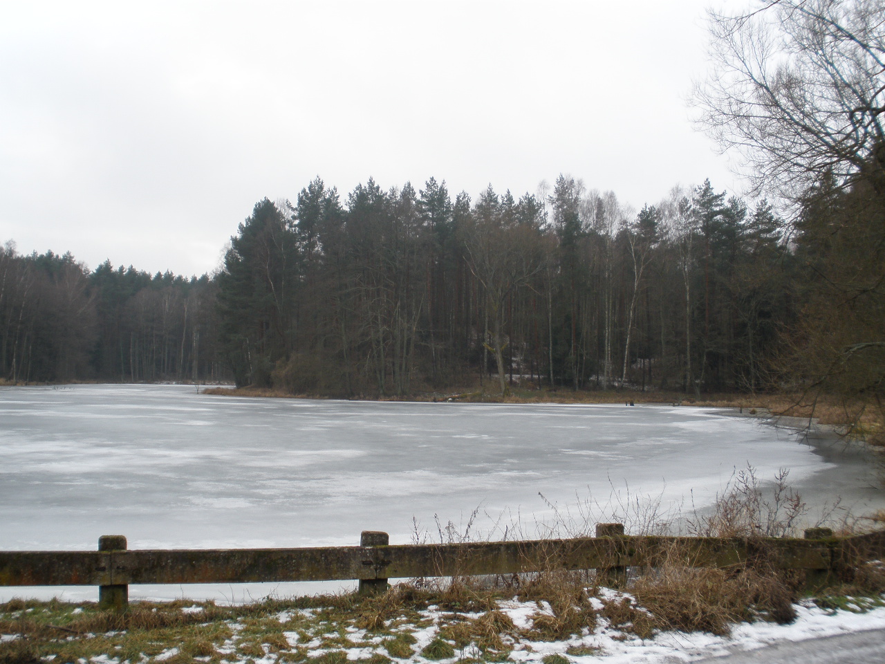 Zimą zalew przy elektrowni w całości skuty jest lodem.